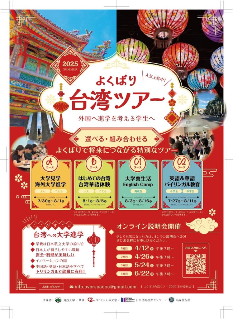 コースC2:英語&華語バイリンガル教育 2025年は9日25万、16日35万でした
